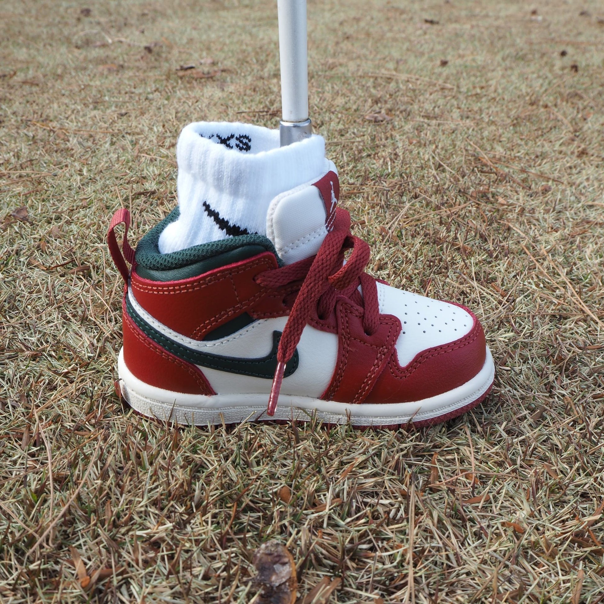 モデル:Jordan 1 Mid [RED STONE/MIDNIGHT GREEN] / カラー:ホワイト・グリーン・レッド