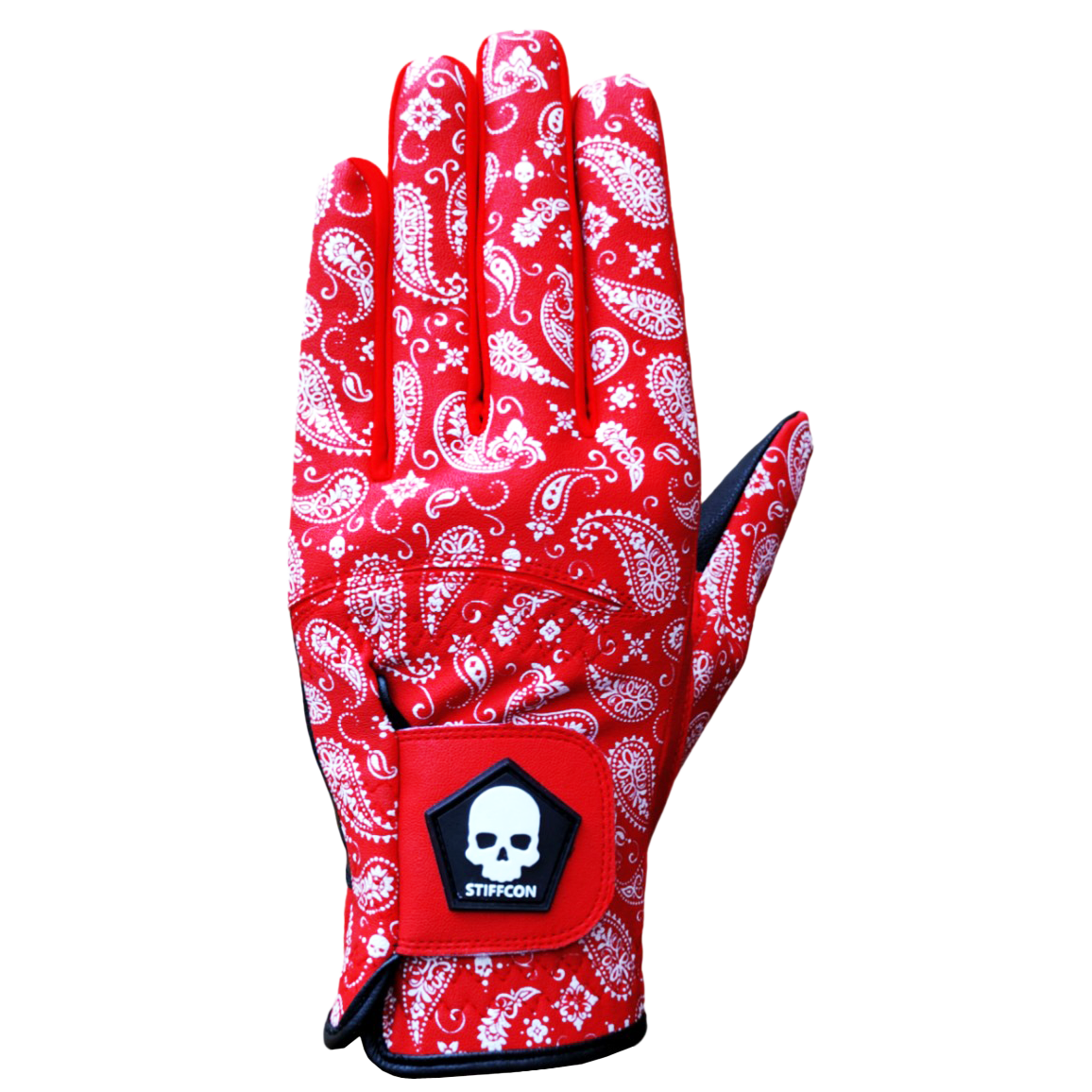 色で攻めるゴルフグローブFLUO/フルオシリーズからペイズリースカル赤色が登場。フルオレッドをベースに大胆なペイズリー柄とブランドロゴのスカルを小さくをプリントした手元のコーディネイトが引き立つデザインのゴルフグローブです。