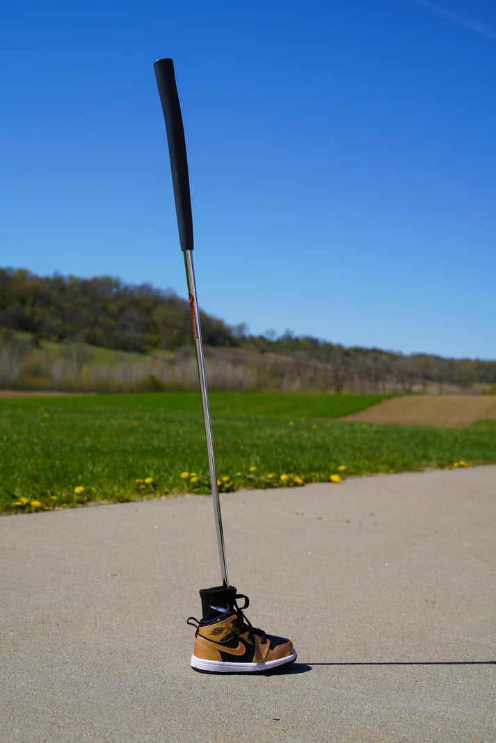 某有名スポーツメーカーのキッズシューズをベースにハンドメイドで加工を施し、使い勝手を高めたパターカバーです。快適にご利用いただくために、隠れたアイデアを盛り込んでいます。