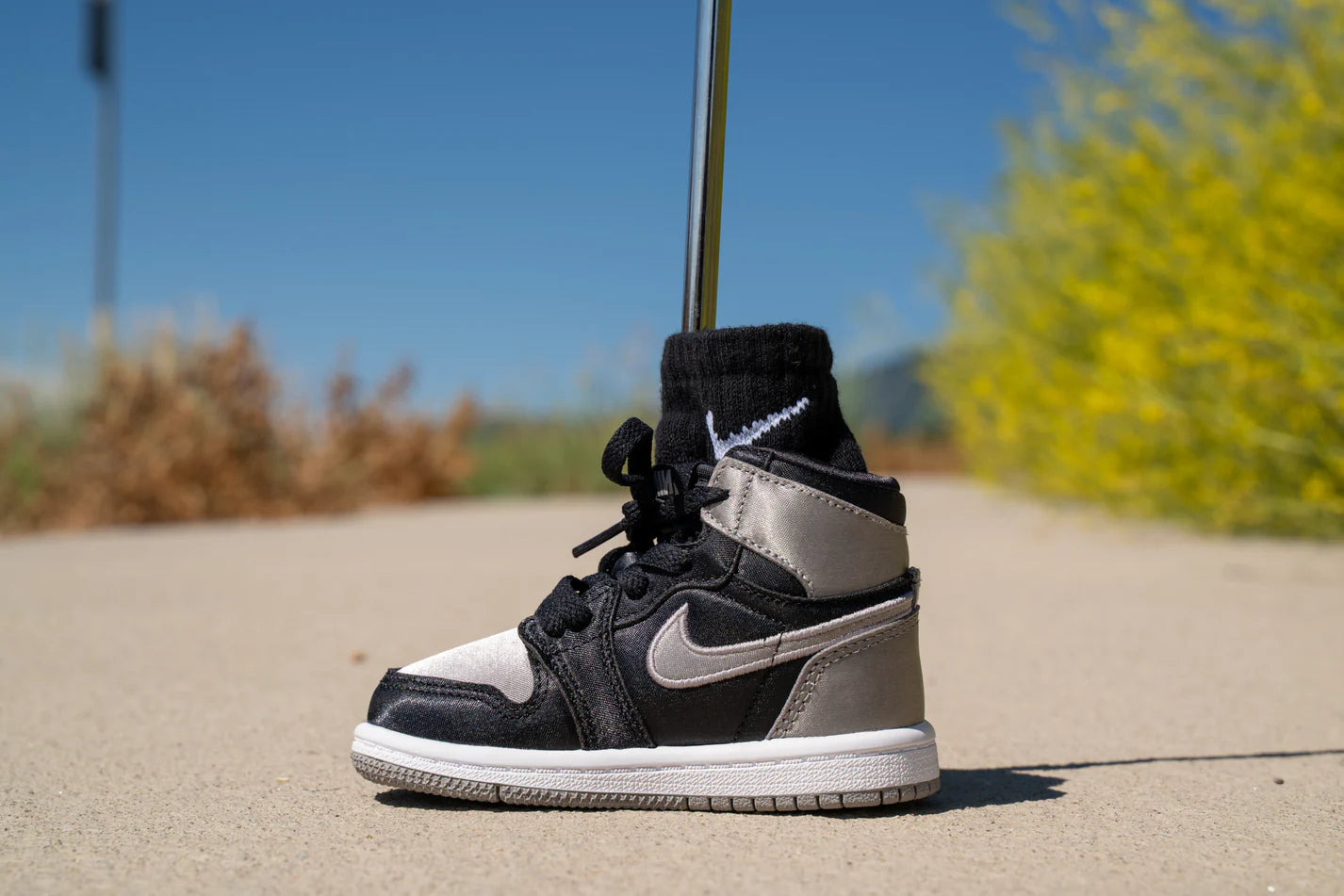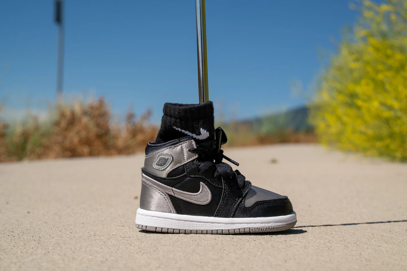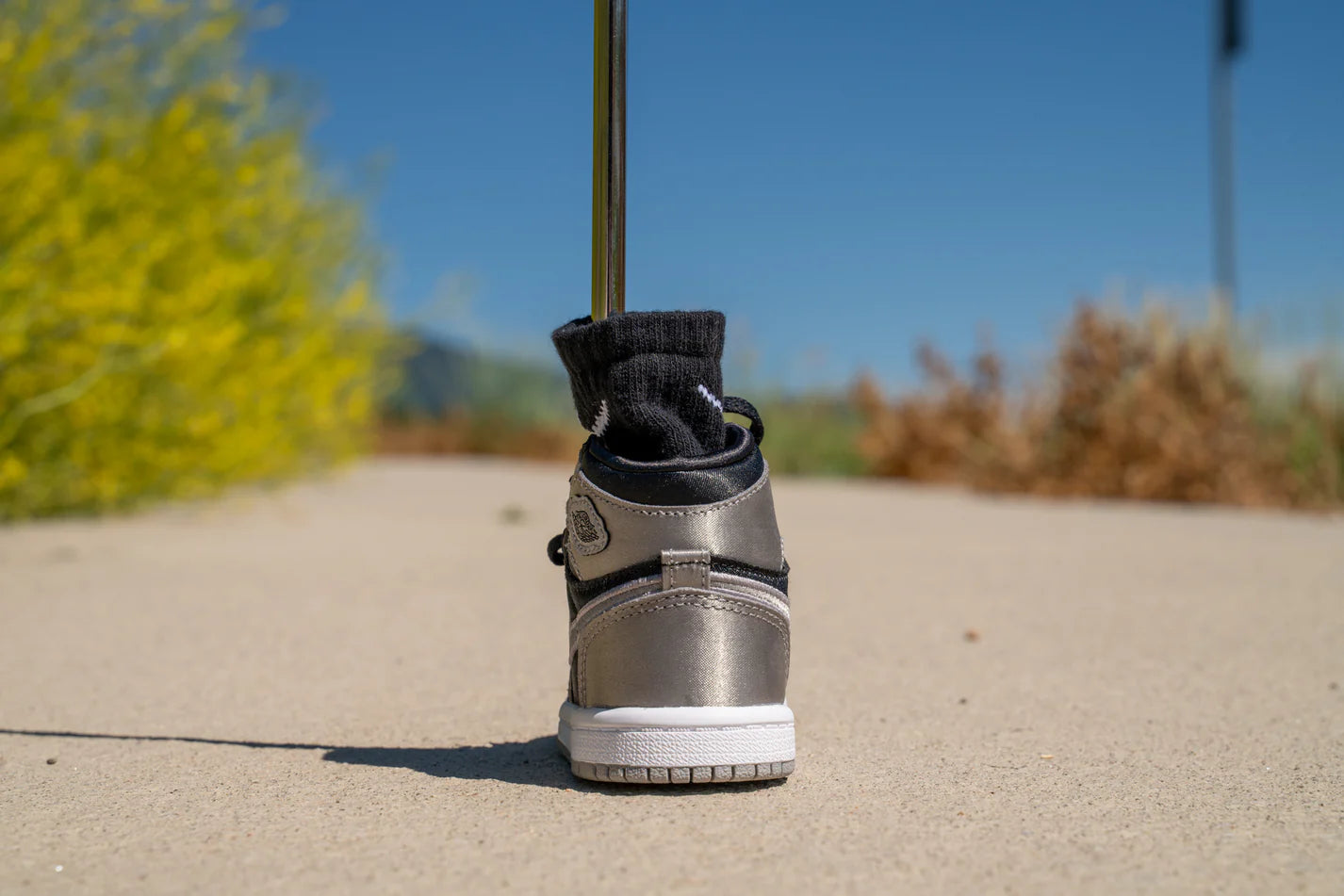 モデル:Jordan 1 Retro High OG [MEDIUM GREY METALLIC] / カラー:シルバー・ブラック・ホワイト