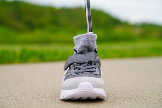 某有名スポーツメーカーのキッズシューズをベースにハンドメイドで加工を施し、使い勝手を高めたパターカバーです。快適にご利用いただくために、隠れたアイデアを盛り込んでいます。