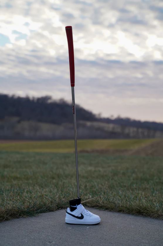 某有名スポーツメーカーのキッズシューズをベースにハンドメイドで加工を施し、使い勝手を高めたパターカバーです。快適にご利用いただくために、隠れたアイデアを盛り込んでいます。