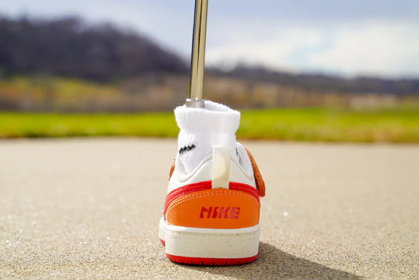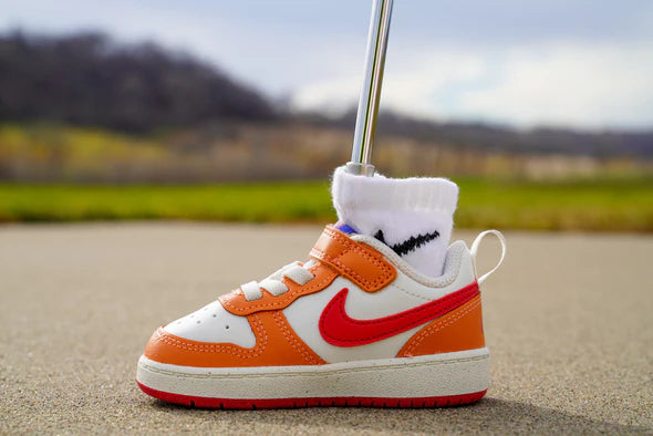 某有名スポーツメーカーのキッズシューズをベースにハンドメイドで加工を施し、使い勝手を高めたパターカバーです。快適にご利用いただくために、隠れたアイデアを盛り込んでいます。