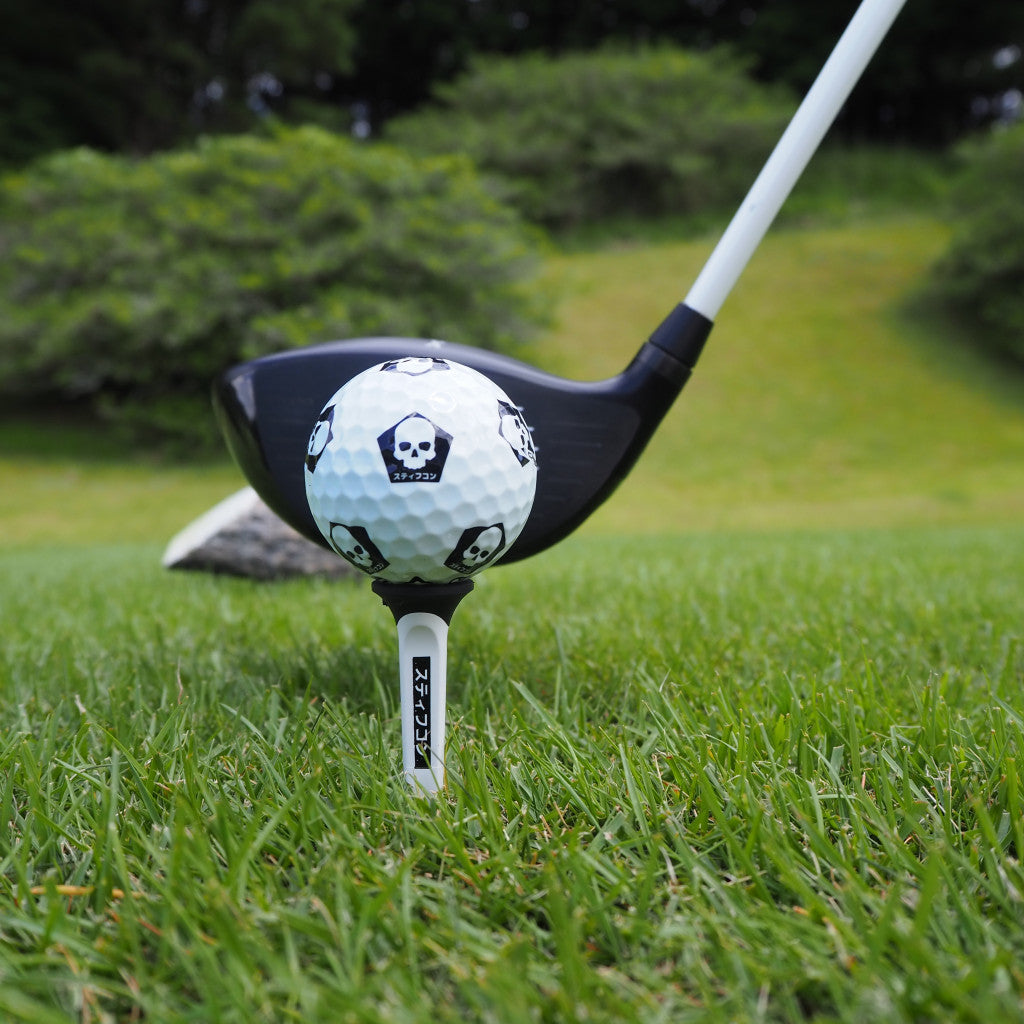 上部のカップ型ラバー内にはブランドロゴのペンタスカル。側面にはカタカナ表記のスティフコンとTOUR TEEロゴ。上部カップは大型でボールの座りが非常に良いです。カラーリングは全てブラックに統一し、貴殿の秘めたる力を解き放ち、集中力を極限まで高めるようデザインされております。